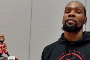 早點(diǎn)進(jìn)場(chǎng)哦KD展示個(gè)人搖頭娃娃:今天前3000名入場(chǎng)球迷將獲贈(zèng)