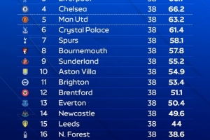 天空體育預(yù)測(cè)英超結(jié)局:槍手奪冠,曼城、紅軍、藍(lán)軍、曼聯(lián)前五