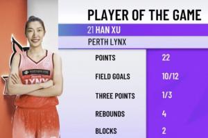 韓旭WNBL首秀22分集錦:各種投射各種準(zhǔn) 全場(chǎng)12中10僅丟2球