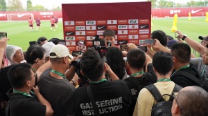 安東尼奧攜劉浩帆出席U23亞洲杯預(yù)選賽賽前新聞發(fā)布會。