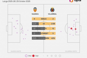 比利亞雷亞爾西甲對陣瓦倫西亞取勝22場,多于對陣其他球隊