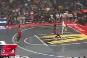 一氣呵成!夏普拿球晃開防守 底線突破騰空暴起雙手扣籃