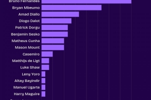 曼聯(lián)隊內(nèi)英超創(chuàng)造機會榜:B費24次、姆伯莫16次、阿瑪?shù)?0次