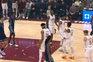 開(kāi)場(chǎng)就是高難度!米切爾借掩護(hù)掛著韋爾斯命中打板三分還加罰!