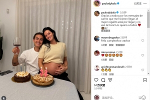 迪巴拉社媒曬與懷孕妻子合照:感謝生日祝福,最棒的禮物即將到來
