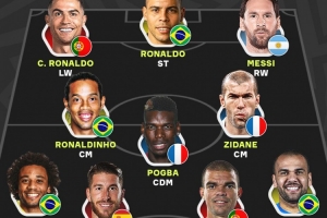 本澤馬評最佳11人:大羅、C羅、梅西領銜鋒線,小羅、齊達內(nèi)在列