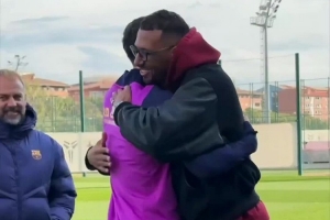 巴薩社媒曬博阿滕造訪訓練基地視頻,與老隊友萊萬擁抱